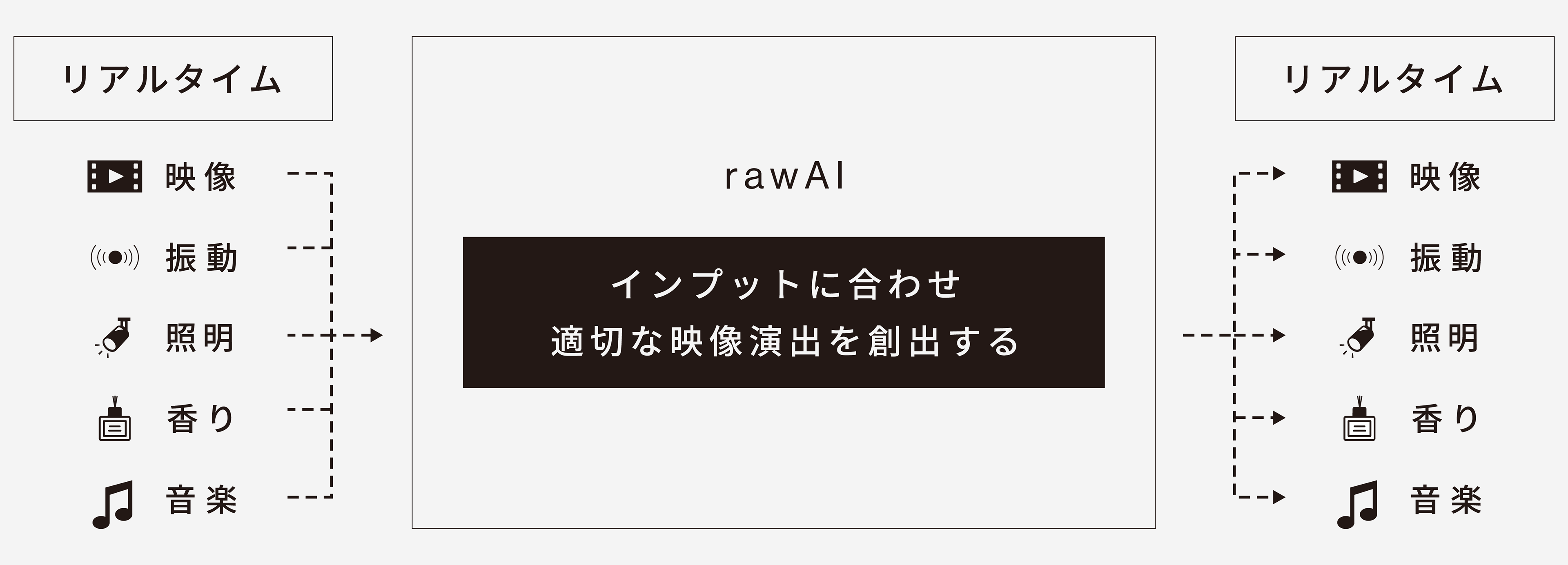 クリエイティブシーンにおける生成AI活用の未来を考え、 大量生産できることによる品質の変化を懸念し、異なるアプローチからのAIクリエイティブを行います。 我々は人の感性に着目し、感性を豊かにすべくAIを活用できないかと、 “raw AI”を開発いたしました。 raw AIは、“演出を拡張するAI”として、これからのシーンに影響を与えていくきっかけになればと考えています。 本技術は特許を取得済みです。(特許第7698833号 音楽処理装置及び音楽処理アプリケーション) raw Producer:Daiki Saijo Creative Director:Yuta Nakano IT Director / Software Architect:Tomonari Hayashi Designer:Yukito Terasawa, Keigo Tsunakawa, Rika Kawana Software Engineer:Natsuki Nishimoto Assistant Engineer:Shuto Yoshida, Kotaro Horikawa, Daichi Fujimura, Momoka Kasuga